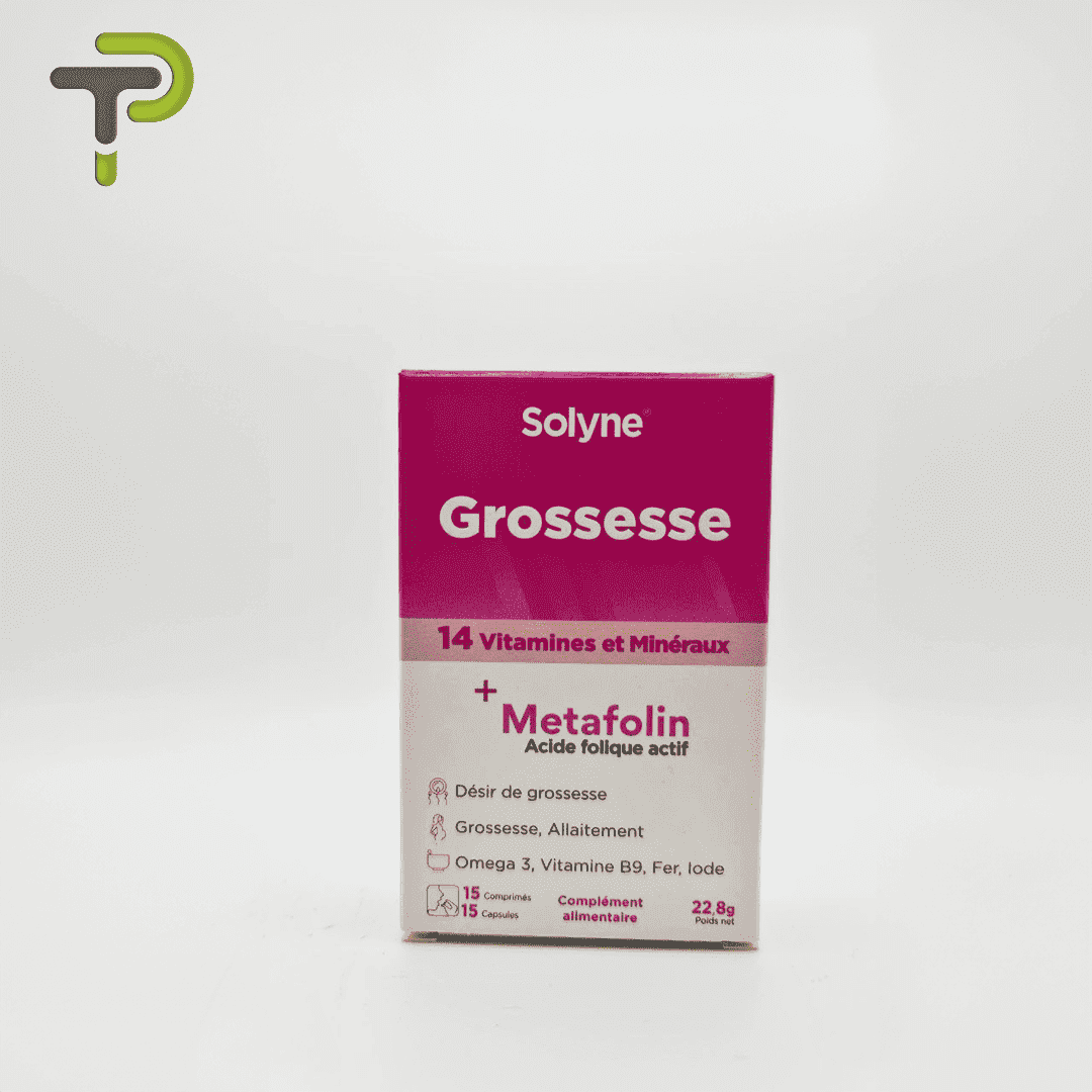 Le complément alimentaire “Grossesse de Solyne” est spécialement conçu pour répondre aux besoins nutritionnels des femmes enceintes et allaitantes. Formulé avec 14 vitamines et minéraux essentiels, dont le Metafolin, une forme active d’acide folique, il favorise un environnement optimal pour le développement du fœtus. Enrichi en Omega 3, vitamine B9, fer et iode, ce produit contribue à soutenir le désir de grossesse et à assurer une nutrition complète pendant cette période cruciale. Chaque boîte contient 15 comprimés et 15 capsules, offrant un soutien complet pour la santé maternelle et fœtale.