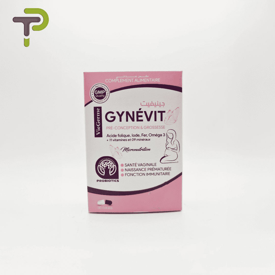Gynévit est un complément alimentaire spécialement formulé pour la pré-conception et la grossesse, comprenant des éléments essentiels tels que l’acide folique, l’iode, le fer, les oméga-3, ainsi que 11 vitamines et 9 minéraux. Cette solution de micronutrition favorise la santé vaginale, réduit le risque de naissance prématurée, renforce la fonction immunitaire, et intègre des probiotiques pour soutenir l’équilibre du microbiote.