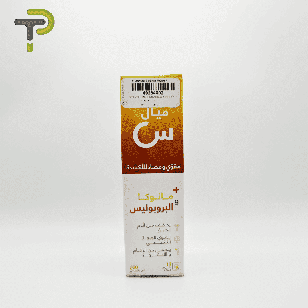 “Miyal S est un produit renforcé et antioxydant qui allie le miel de Manuka et la propolis Lo+. Idéal pour soulager les maux de gorge, renforcer le système respiratoire et offrir une protection contre le rhume et la grippe. Chaque boîte contient 15 comprimés, pesant au total 260 grammes.”