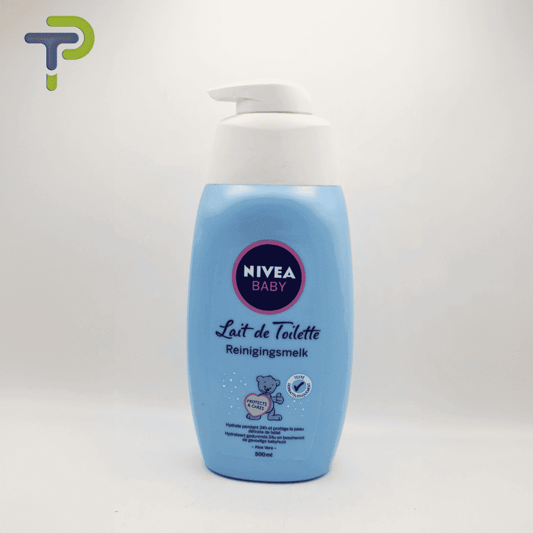 - Appliquez le NIVEA Baby Lait de Toilette sur un coton doux.