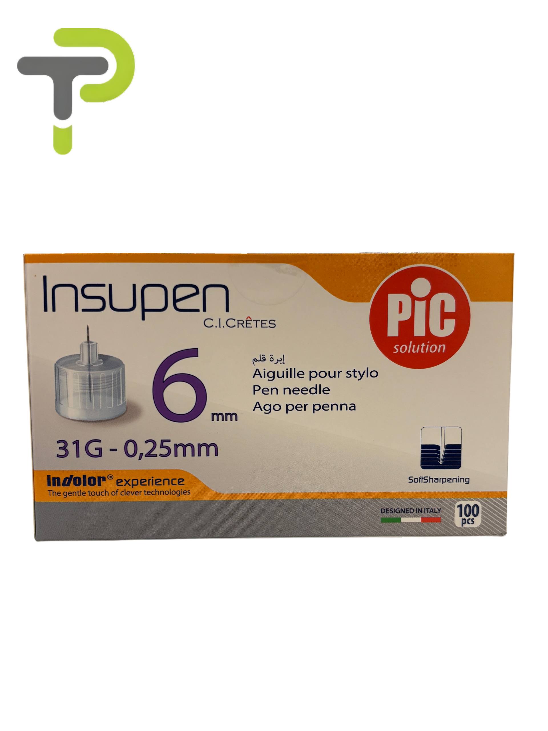 Le Pic Insupen 6mm est une aiguille stérile de haute qualité, spécialement adaptée pour l’administration d’insuline via un stylo injecteur. Sa longueur de 6mm est un standard recommandé pour de nombreuses thérapies, offrant une pénétration douce et une minimisation de la douleur. Chaque aiguille est conçue pour une seule utilisation, garantissant hygiène et sécurité optimales.