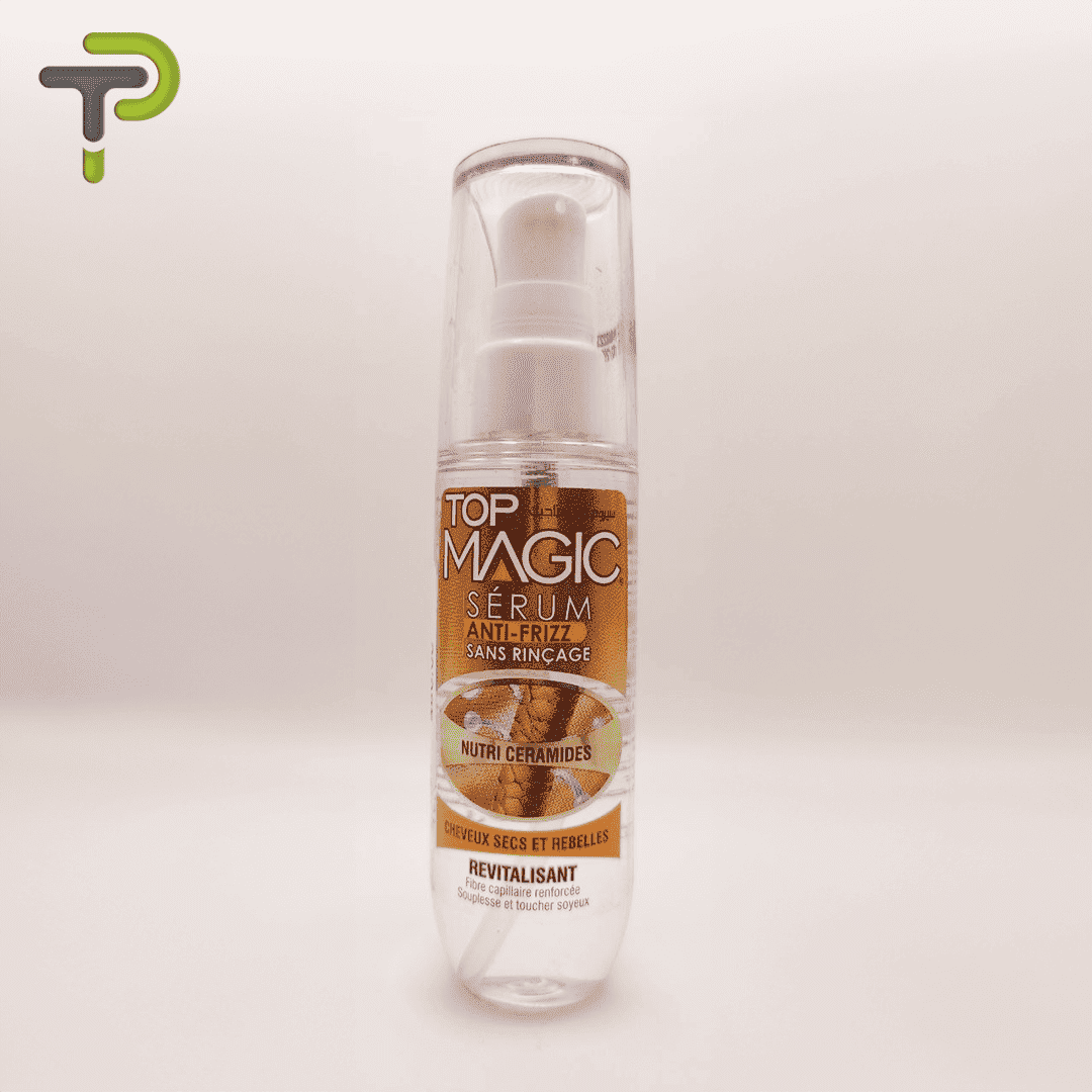 Le Sérum anti-frizz sans rinçage “Top Magic” est un produit de soin capillaire spécialement formulé pour les cheveux secs et rebelles. Cette formule légère et non grasse aide à maîtriser les frisottis, à lisser les mèches indisciplinées et à apporter une brillance soyeuse à votre chevelure. Il s’applique facilement sur les cheveux secs ou humides, sans nécessiter de rinçage, pour un résultat impeccable qui prévient et réduit les frisottis, laissant vos cheveux lisses, doux et parfaitement disciplinés. Un allié incontournable pour des cheveux sublimes et bien maîtrisés, quel que soit votre type de coiffure.